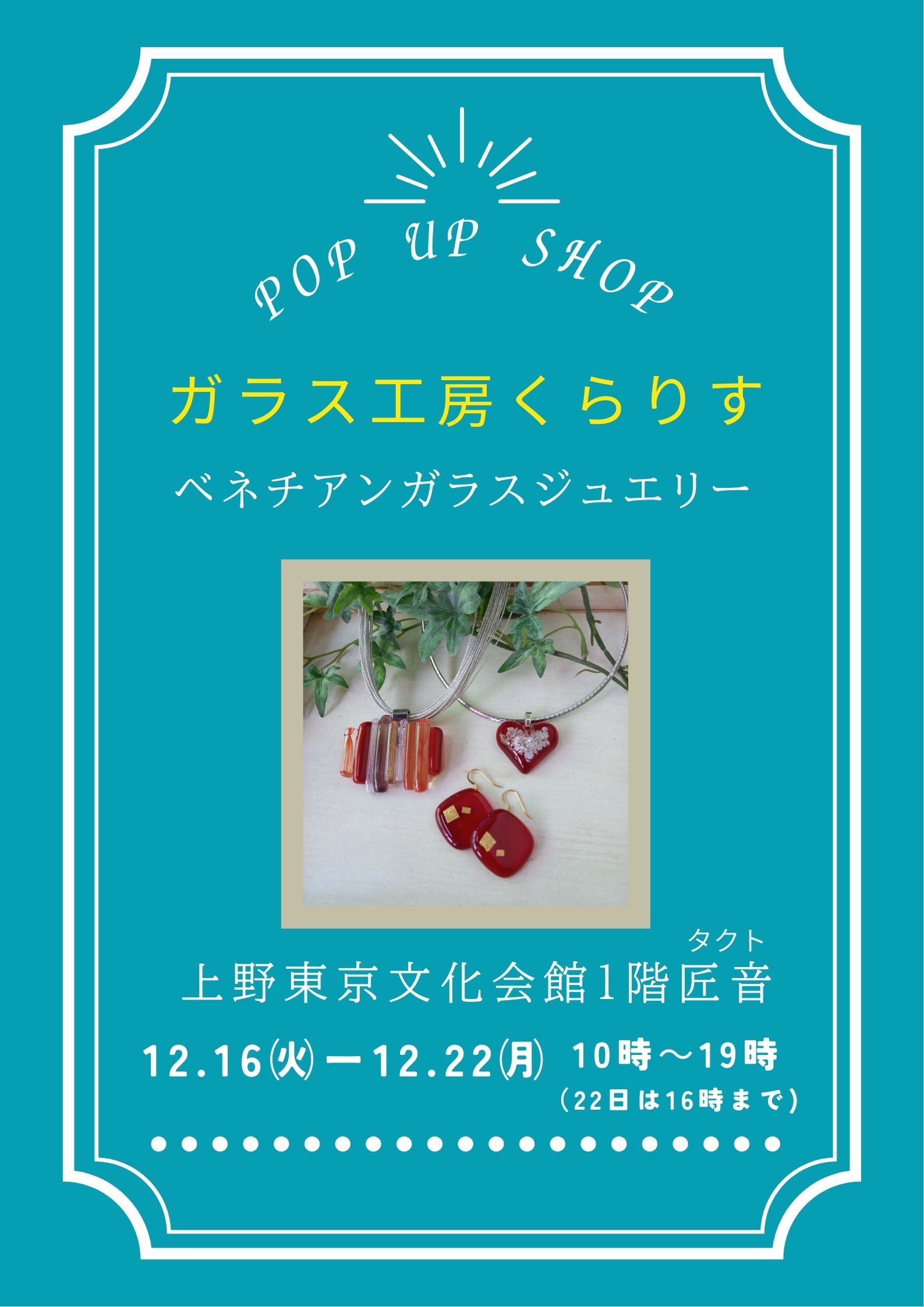 2025年12月16日㈫~12/22㈪ 10時~19時(22日は16時まで)