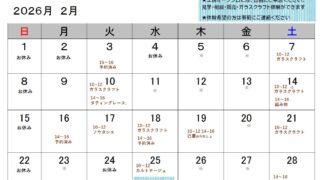 夏のガラスクラフト体験7/26 (土) 10時〜12時 14時〜16時8/2 (土) 10:00〜12:00 14:00〜16:008/9 (土) 10:00〜12:00 ―8/20 (水) 10:00〜12:00 14:00〜16:00...